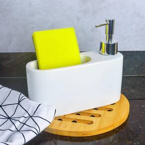 O suporte integrado mantém sua esponja sempre à mão, facilitando o seu uso e evitando que fique jogada pela pia. Dessa forma, você terá sua pia mais organizada e livre de bagunças.