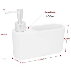 Com medidas de 15,5cm x 17,5cm x 6cm altura x largura x profundidade , esse porta detergente possui o tamanho ideal para acomodar seu detergente líquido e sua esponja de forma prática e organizada. Além disso, seu design clean e sofisticado traz um toque de elegância para sua cozinha.