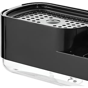 Suporte para esponja com ventilação adequada, promovendo secagem rápida e prevenindo a proliferação de bactérias.