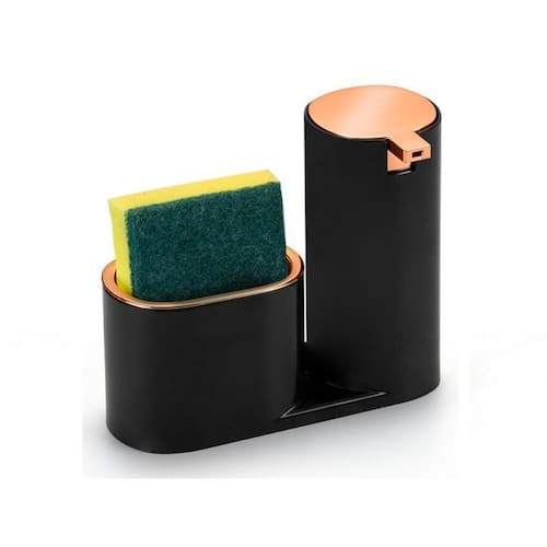 lindo porta detergente com armazenamento para a bucha. Bico dosador econômico com detalhe cromado, prático e elegante. Dimensões: c. 17,8 x l. 6,9 x a. 14,6 cm