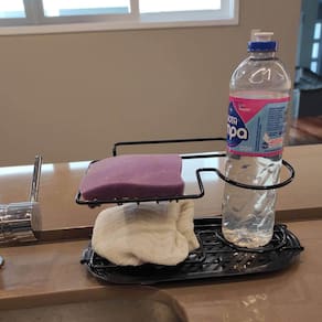 Para manter a pia organizada e a praticidade em meio à correria do dia a dia, é necessário um suporte para sabão detergente e esponja, reunindo todos e deixando-os ao seu alcance. Esse organizador de pia de cozinha foi desenvolvido em aço com acabamento em pintura epóxi de cor preto, se adaptando facilmente à decoração já existente no ambiente. O porta sabão e bucha de pia conta com uma bandeja coletora para armazenar os resíduos que escorrem e facilitar sua limpeza. Pode ser utilizado sobre a bancada, dentro do armário ou até mesmo fixado na parede, pois acompanha dois ganchinhos autocolantes resistentes a água, prendendo o organizador de pia preto na parede de forma fácil, sem a necessidade de furos ou sujeira. Armaze seus produtos de limpeza de louças em um mesmo aramado para pia de cozinha, incorporando a organização de sua casa e tornando sua rotina ainda mais prática.