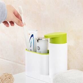 Dispenser para detergente ou sabonete líquido, excelente para organização da sua pia da cozinha ou banheiro Possui reservatório com capacidade de 250ml, e ainda um compartimento segmentado para armazenar esponja ou até mesmo escova de dente e pasta. Seu diferencial é a saída do detergente voltada para baixo, assim quando pressionar não respinga.