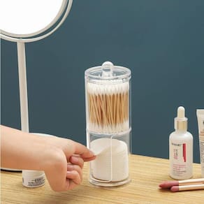 Porta Disco de Algodão Organizador Transparente: Praticidade e Elegância para Seu Dia a Dia Mantenha seu ambiente sempre organizado com um toque de sofisticação. Prático, higiênico e acessível, ideal para discos de algodão e cotonetes.