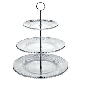 Conteúdo: 01 porta doces de 3 andares Medidas: Base menor: ø 18,5 cm x Base média: ø 26,5cm x Base maior: ø 31,5 cm Altura produto montado: 35,5 cm Modelo: Renaissance Material: Cristal Peso aprox. Do produto: 2.839kg