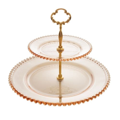 Porta Doces de Cristal 2 Andares Pearl Âmbar 19,5/32 x 24 cm Wolff