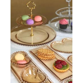 O Porta Doces Pearl Âmbar Wolff é a escolha perfeita para apresentar doces, macarons e pequenas sobremesas com sofisticação. Produzido em cristal com acabamento texturizado inspirado em pérolas, possui tonalidade âmbar que traz charme e personalidade à composição. Com dois andares e dimensões de 19,5cm e 32cm de diâmetro, além de 24cm de altura, cria um efeito imponente e organizado à mesa. Ideal para ocasiões especiais ou para deixar seu cantinho do café ainda mais elegante.