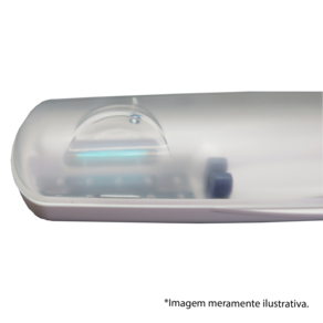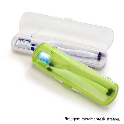 Escova de dentes sem vírus e bactérias! Este estojo higieniza sua escova de dentes, eliminando 99% dos vírus, germes e bactérias. Com raios ultravioleta, ele permite que você leve sua escova de dentes para o trabalho ou viagem, sem a preocupação de ser contaminada na bolsa, na necessarie, na mala, ou, no dia a dia, no seu banheiro. Bastam poucos minutos dentro do estojo e sua escova está pronta para o uso! Estudos recentes revelam que o uso do raio ultravioleta é eficaz contra o vírus desta pandemia. Simples manuseio, bastando encaixar a escova, *sem excesso de água*, no local indicado, com as cerdas para a lâmpada, fechar o estojo e a luz acenderá e, depois, desligará, indicando que a higienização foi feita. Usando apenas 2 pilhas AA, esta tecnologia é prática, eficaz e útil para manter a higiene da sua boca perfeita! Medidas: 2,5 cm (Altura) x 5,5 cm (Largura) x 22 cm (Comprimento). Peso 110g. - Cor: Branco - *Pilhas não inclusas* - Garantia: 03 meses - Envio: os pedidos são enviados nos dias úteis às 13:00h. O produto é de excelente qualidade e deve ser utilizado de acordo com as instruções, por isso LEIA ATENTAMENTE O MANUAL.