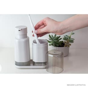 O Porta Escova Dual com Tampa Branco OU é o item perfeito para quem busca aliar funcionalidade e organização para os itens de higiene pessoal sobre o lavador. Com design geométrico e bordas arredondadas, o Porta Escova Dual com Tampa Branco OU é uma junção de três componentes, que misturam cores fechadas e translúcidas para que você visualize de forma prática o conteúdo que está dentro. Além de possuir divisórias que facilitam a organização, deixando fácil a identificação das escovas. A linha é fabricada em material resistente combinando de um jeito único e mágico cores translúcidas e fechadas, que vão embelezar ainda mais o ambiente. Design imponente e ergonômico, linhas suaves e cores que vão trazer mais vida para o seu banheiro são as características da linha Dual feitas para deixar seu banheiro mais OU.Código de Barras:7908466005863 Referência:PED900BCF Marca: OU Composição/Material:Poliestireno Dimensões aproximadas do produto (cm):20,1x7,5x7,5 cm Peso aproximado do produto (kg):0.165 kg