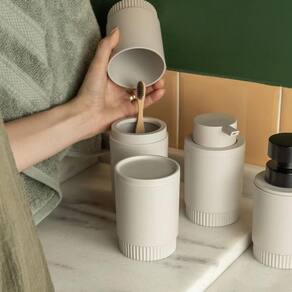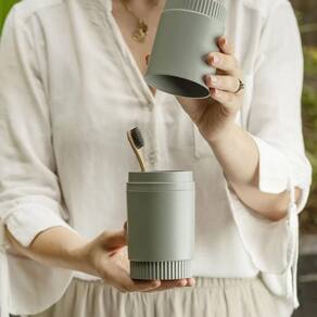Porta escova pasta dente banheiro dental com tampa fosco ou cor: bege porta escova e pasta de dente com tampa dórica ou