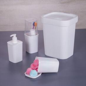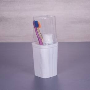 Porta Escovas e Creme Dental com Tampa Classic Frisos Branco -PLASÚTIL