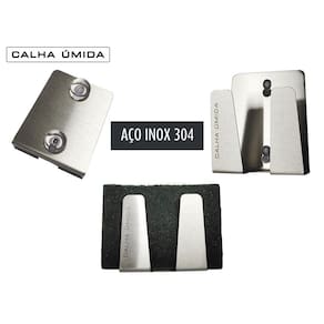 Dimensões: 70 x 25 x 80 mm (CxLxA) Acabamento: Escovado Scotch Brite Material: Aço Inoxidável AISI 304Espessura: 1.0 mm Kit com 2 Porta Esponja Suportes para 1 esponja e 1 rodinho de pia.