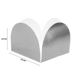 Forminhas para Doces 4 Pétalas Metalizada Prata e Branca 50 unidades - NC ToysAs Forminhas para Doces 4 Pétalas da NC Toys são também conhecidas como Forminha Quadrada, Forminha Caixeta, Forminha para Montar são ideais para docinhos em geral, como brigadeiro, beijinho, bombons e muito mais, possuindo composição em papel offset de 150 g! São super simples de montar, sendo necessário apenas fazer a dobra das 4 pétalas para cima do jeito que preferir, pois esse porta forminha pode ser utilizado de ambos os modos. Possui aproximadamente 3,2 cm de largura e comprimento e 2,5 cm de altura, quando montados.