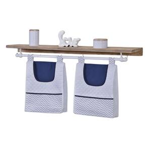 Porta Fralda Organizador Quarto de Bebê Menino Menina 2 Peças Varão Cor: Chevron azul marinho O porta fraldas é ideal pra ter sempre a mão os produtos mais no dia a dia com seu bebê. Cada porta fralda tem 2 bolsos frontais, onde podem ser colocados produtos pequenos, e um bolso maior pra colocar as fraldas, roupas, toalhas ou itens maiores. Praticidade e decoração em um só produto. Sugestão de uso: Pendurado em varão ou no berço Contém na embalagem: 2 porta fraldas MEDIDAS: 38cm alt x 32cm larg x 10cm prof COMPOSIÇÃO: Matelado de microfibra 100% poliéster Tecido estampado e liso percal 180 fios 100% algodão - Foto ilustrativa, tonalidade da cor pode variar um pouco no produto real Produtos fabricados em Ibitinga-SP, a Capital Nacional do Bordado e do Enxoval. Marca: Não Informado Ean: 7793725526742
