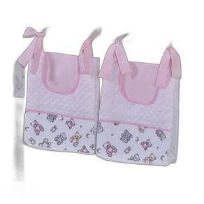 Porta Fralda Organizador Quarto de Bebê Menino Menina 2 Peças Com Laço Cor: Urso rosa O porta fraldas é ideal pra ter sempre a mão os produtos mais no dia a dia com seu bebê. Cada porta fralda tem 2 bolsos frontais, onde podem ser colocados produtos pequenos, e um bolso maior pra colocar as fraldas, roupas, toalhas ou itens maiores. Praticidade e decoração em um só produto. Sugestão de uso: Pendurado em varão ou no berço Contém na embalagem: 2 porta fraldas MEDIDAS: 38cm alt x 32cm larg x 10cm prof COMPOSIÇÃO: Matelado de microfibra 100% poliéster Tecido estampado e liso percal 180 fios 100% algodão - Foto ilustrativa, tonalidade da cor pode variar um pouco no produto real Produtos fabricados em Ibitinga-SP, a Capital Nacional do Bordado e do Enxoval. Marca: Não Informado