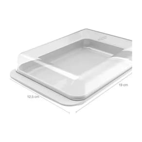 Ideal para acondicionar frios. Recipiente empilhável para uma melhor organização no refrigerador. Prático e fácil de limpar. Serve também como manteigueira.