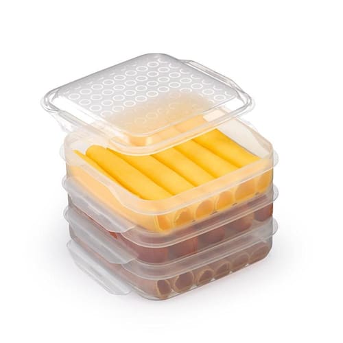 Porta frios triplo transparente livre de bpa 16,5x15x10,5 cm