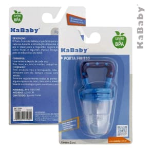 Porta Frutas KaBaby Azul A Chupeta Porta Fruta da KaBaby é perfeita para a descoberta de novos sabores durante a introdução alimentar. Com bico de silicone, ela é ideal para a ingestão segura de alimentos sólidos como frutas e legumes. Possui design anatômico, perfeito para as mãozinhas do bebê. Ean: 7898605215805
