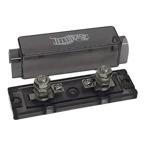 O Porta Fusível Technoise traz um visual diferenciado com excelente acabamento e tamanho compacto. Feito em acrílico de alta resistência com capa fumê, é muito simples de usar, utilizando-se de terminais roscados com porcas, ambos banhados a níquel, suportando terminais olhal ou garfo para uma instalação segura e firme, sem mal contato. Possui capacidade para 1 fusível faca ANL, ideal para sistemas de alta potência ou para um fusível mini faca, ideal para sistemas de menores potência.