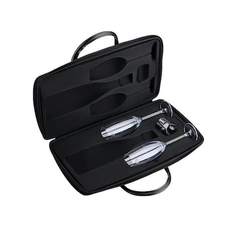 Porta Garrafa Espumante com 2 Taças Cristal e Tampa Hermética Bolsa Porta Garrafa em formato de maleta é ideal para transporte fácil e seguro de sua garrafa além de trazer uma elgância única Além da maleta exclusiva acompanha 2 taças feitas de cristal, tornando-as além de fina muito mais resistentes que as taças convencionais. Traz consigo uma tampa para espumante excluisiva para você não ter preocupação caso não beba a garrafa por inteiro, com vedação de qualidade irá preservar o gás, aroma e principalmente o sabor de seu espumante mantendo ele com a mesma essência de lacrado Seu estilo único traz um diferencial em exclusivo, com sua alça de alta qualidade transportar sua garrafa nunca será um risco Cabe perfeitamente uma garrafa 750ml designe moderno e exclusivoproduzido com material da mais alta qualidade + Sobre o produto Produtor: Boccati UtilidadesTipo: Acessórios para EspumanteDimensões: 47x25x13cm CxLxA Peso: 1610gCapacidade: 1 garrafa espumante 750mlMaterial: E.V.A. bolsa Cor: Preta bolsa IMAGEM ILUSTRATIVA