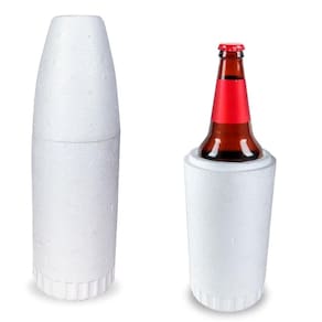 Porta garrafa de 600ml popularmente conhecida como camisinha. Utilizada frequentemente em bares, lanchonetes e restaurantes pelos consumidores mais exigentes, que pedem que o produto venha na porta cerveja feito de isopor. Uma peça moldada de acordo com o corpo da garrafa, e tem uma tampa que se encaixa perfeitamente à porta cerveja feito de isopor.