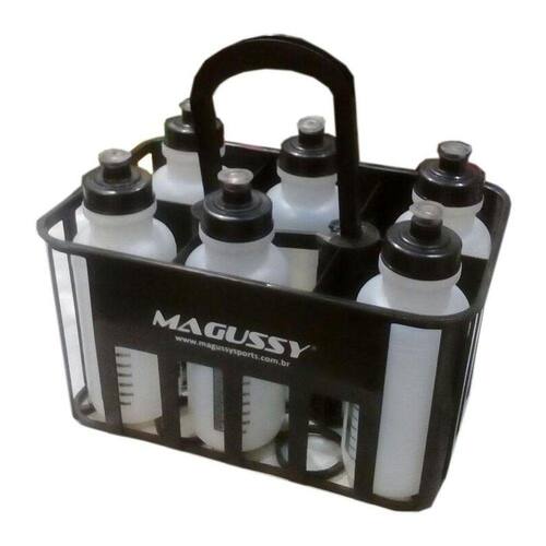 Conteúdo da Embalagem: 1 suporte de squeeze Magussy com alça + 6 Squeeze Magussy 500ml