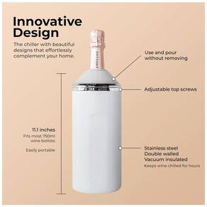 DESIGN REVOLUCIONÁRIO Este design único mantém vinho, champanhe ou qualquer outra bebida de tamanho semelhante refrigerada por horas Seu design de aço inoxidável, parede dupla e isolamento a vácuo garante que as garrafas frias sejam mantidas frias, mesmo com uso prolongado, sem condensação. Este refrigerador cuidadosamente projetado também possui um design sofisticado, moderno e elegante em uma variedade de cores que você terá orgulho de exibir. FÁCIL DE USAR Para desfrutar do Isolador de Garrafa de Vinho Vinglacé, basta desaparafusar a tampa ajustável e inserir sua garrafa gelada. Em seguida, aperte a tampa novamente e desfrute do seu vinho ou champanhe na temperatura perfeita. Até a hora de trocar as garrafas, você não precisa se preocupar em colocar e tirar a garrafa do isolador, pois ainda é possível despejar facilmente sua bebida preferida quando o isolador estiver cobrindo sua garrafa. TOMAR VINHO FACILMENTE EM MOVIMENTO Este isolador de garrafa de vinho é fácil de transportar, leve e possui um design portátil. Você pode levar vinho gelado ou champanhe onde quer que vá Se você deseja desfrutar de um refrescante rosé em um piquenique na praia, um chardonnay de carvalho em um almoço da tarde ou sua garrafa de champanhe vintage preferida para comemorar uma ocasião especial, pode ter certeza de que seu Isolador de Garrafa de Vinho manterá todos os sabores e aroma tal como o vinicultor pretendia. O PRESENTE PERFEITO Não procure mais pelo presente perfeito para dar ao seu familiar conhecedor de vinhos, amigo, parceiro, colega de trabalho ou conhecido Um presente da Vinglacé dura para sempre e certamente impressionará qualquer destinatário, seja para uma festa de noivado, casamento, chá de panela, inauguração de casa, aniversário, feriado ou apenas porque. Cada produto vem em uma linda caixa de presente, pronta para qualquer ocasião especial. É um presente que proporciona um uso prático e um design elegante Marca: Não Informado