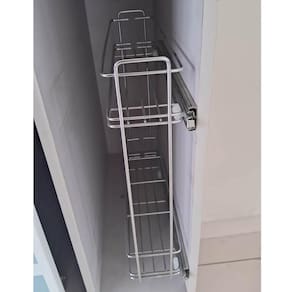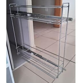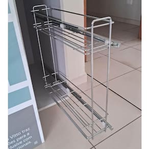 Garantia: 6 meses / Peso: 1,8kg / Cor predominante: cromado / Referência: 1022022790; Dimensões: 15cm (L) x 48cm (A) x 46cm (P) para vão livre de 17cm; Dimensões necessárias no módulo de instalação: 12cm (L) x 59cm (A) x 47cm (P); Capacidade: 8kg; Conteúdo: 1 porta temperos deslizante; Tipo de fixação: lateral, permite a instalação em ambos os lados do armário; Materiais: aço carbono cromado e aço inox; Obs.: o produto do anúncio é na cor cromado, imagens de demais cores são apenas ilustrativas.