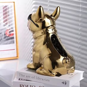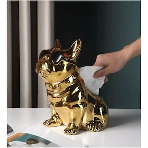 Porta guardanapo cerâmica bulldog romeu dourado 24x17x24 Adicione um toque de charme e sofisticação à sua mesa com o encantador porta-guardanapo de cerâmica em formato de bulldog. Este acessório irresistível é uma fusão perfeita entre estilo e funcionalidade, capturando a essência lúdica e elegante dos adoráveis bulldogs.