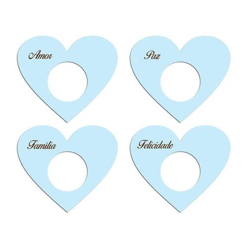 Porta Guardanapo Coração Desejos Kit 4 Peças 7,5cmx6,5cm - Cria Arte Laser Azul Claro