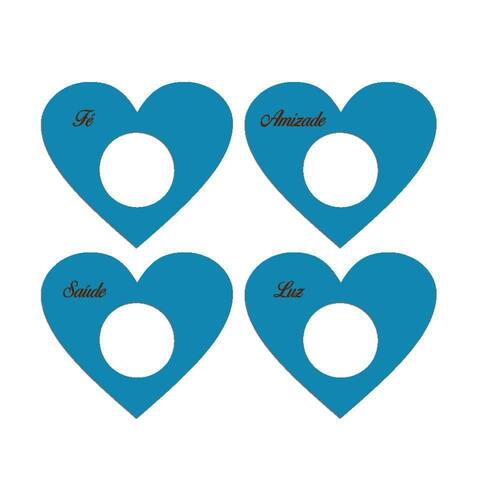 Porta Guardanapo Coração Desejos Kit 4 Peças 7,5cmx6,5cm - Cria Arte Laser Azul -