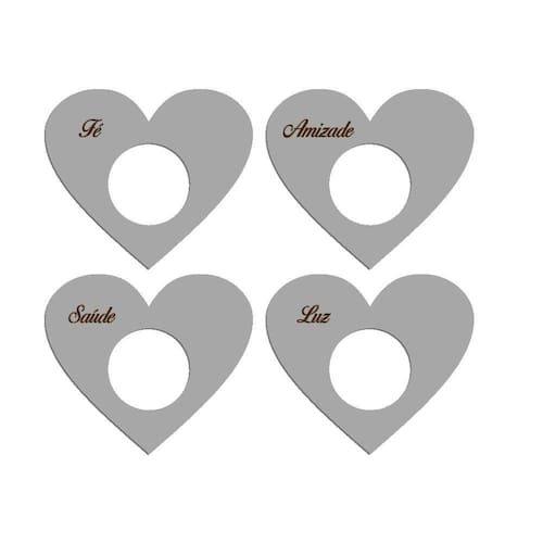 Porta Guardanapo Coração Desejos Kit 4 Peças 7,5cmx6,5cm - Cria Arte Laser Cinza Claro -