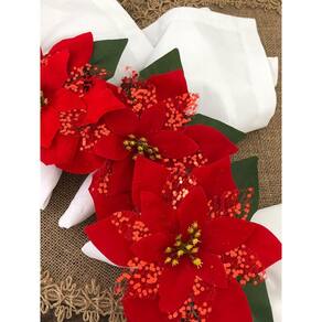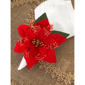Porta Guardanapo de Natal e Ano Novo, artesanal com Flor Permanente e Argola de Madeira Cerejeira.