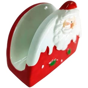 Porta Guardanapo Decoração Papai Noel Enfeite Natal Cerâmica -
