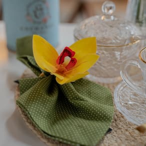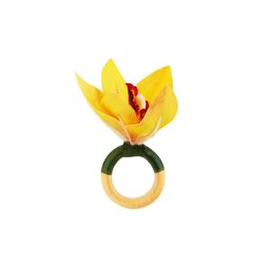Porta Guardanapo Em Silicone Orquídea Cimbidio Amarela Mameg - Características Gerais do Produto: • Dimensões: 8x9x11cm • Material Principal: Silicone • Composição: Madeira e Silicone • Informações Adicionais: Produto feito a mão; Limpar com uma flanela úmida; Não expor a água abundante