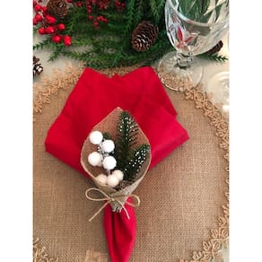 Porta Guardanapo de Natal Rústico Azevinho Branco, artesanal com Flor Permanente e Argola de Madeira Cerejeira.
