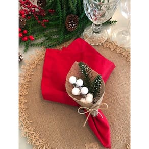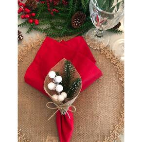 Porta Guardanapo de Natal Rústico Azevinho Branco, artesanal com Flor Permanente e Argola de Madeira Cerejeira.