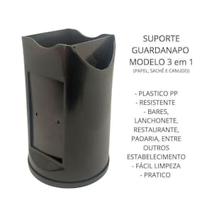 01 unidade Porta guardanapo 3 em 1 Sachê - canudos - papel tv Economize espaço e utensílios em cima da mesa de seu comercio. Com os porta guardanapo 3 em 1 você coloca tudo em um único lugar. Ideal para bares, lanchonetes, restaurantes, padaria, festas, eventos, entre outros.. Material: plásticos pp Preto Validade indeterminado Resistente de ótima qualidade; Marca: Sales Stingray