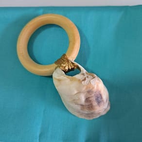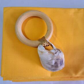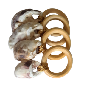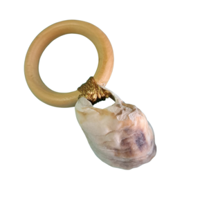 Porta-Guardanapo confeccionado com concha marinha e argola de madeira.