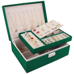 A maleta possui uma estrutura de dupla camada, projetada para oferecer espaço suficiente para todos os tipos de joias e bijuterias, incluindo colares, brincos, pulseiras, anéis, acessórios de cabelo, relógios e muito mais. A camada superior é removível e possui um quadro de divisória móvel, permitindo o armazenamento personalizado dos seus acessórios.