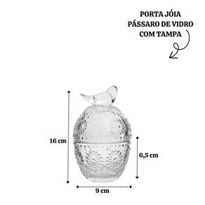 O Porta joias de vidro com tampa e detalhe de um passarinho não apenas serve como um local funcional para guardar suas joias, mas também acrescenta um toque de beleza e elegância ao ambiente. É um presente popular para ocasiões especiais, como aniversários, casamentos e outras celebrações.