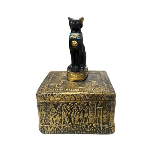 Guarde suas joias com estilo e reverência à deusa egípcia Bastet, símbolo de proteção, beleza e graça. Este porta joias quadrado é confeccionado em resina de alta qualidade, com um delicado acabamento dourado que confere sofisticação ao ambiente. Ele é ideal para manter suas peças organizadas e seguras. O design icônico da deusa Bastet no topo traz um toque místico e cultural, perfeito para quem valoriza a história e o simbolismo egípcio. Além de funcional, é uma peça decorativa que transforma qualquer espaço.