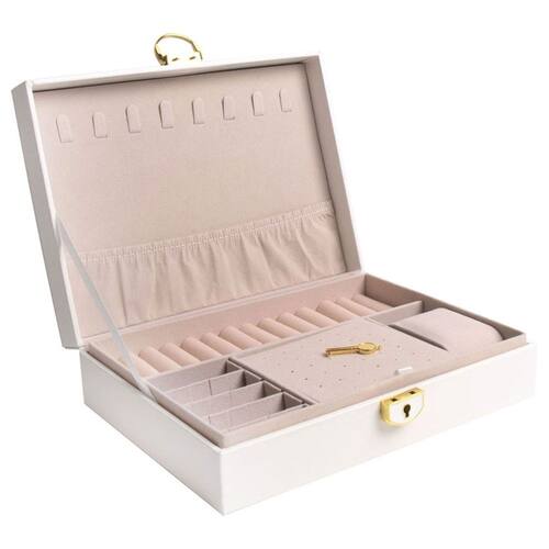 Cada compartimento foi projetado para dar a cada acessório o cuidado que ele merece. Inclui também uma fechadura com chave para trancar o estojo com segurança e manter estranhos e crianças longe de seus objetos de valor.