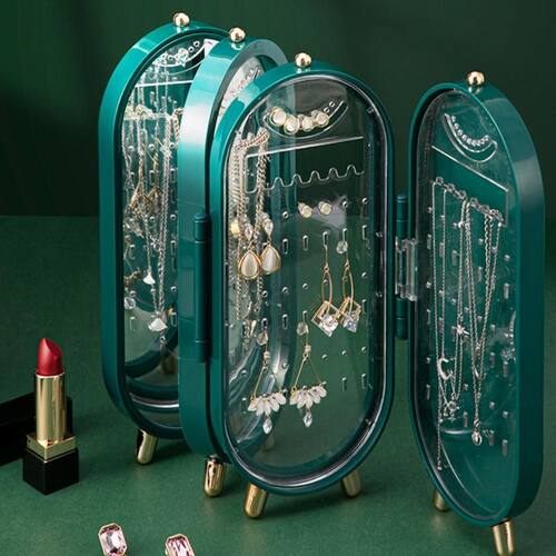 Características: • Design dobrável para fácil armazenamento e transporte • Espelho embutido para praticidade • Compartimentos independentes que evitam atrito entre as joias • Estrutura à prova de poeira, garantindo proteção e conservação das peças
