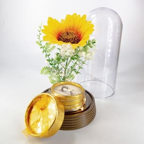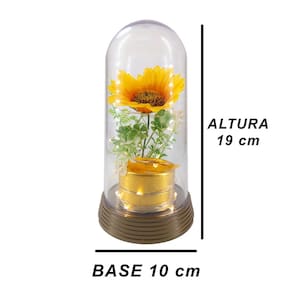 Eternize seu amor com o Porta Aliança Cúpula Da Bela e A Fera. Encante a pessoa amada com um belo pedido de casamento com o Porta Aliança Cúpula Da Bela e A Fera. Detalhes: -10 cm de diâmetro por 19 cm de altura -base de plástico, na cor preto-cúpula de acrílico -caixa para colocação das alianças -luzes de LED que funcionam apenas 2 baterias 2032 inclusas Aliança das fotos somente para ilustração, não enviamos as alianças. Marca: Não Informado