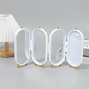 O Porta Joias em acrílico é a solução ideal para manter suas peças organizadas, protegidas e sempre à mão. Com design dobrável, é prático de transportar e ocupa pouco espaço quando fechado, além de contar com espelho integrado para maior conveniência no uso diário.