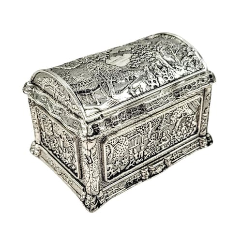 Porta-Joias Metal Cromado Desenhos Orientais Prata 8Cm
