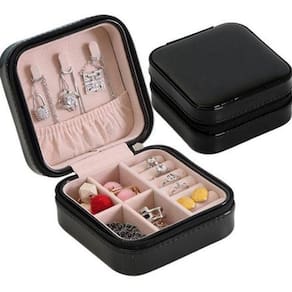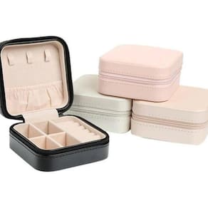 Porta jóias para viagem caixa bolsa com ziper para anel cordão Cor: preto Produto novo Garantia mercado platinum 100% novo e de alta qualidade Design simples e compacto Feita de couro pu de alta qualidade, toque suave; bem construído, lindamente trabalhada, elegante e delicada Ele tem forro de lã em cada seção, que protege suas jóias preciosas e evita qualquer embaraço e arranhões. O nível superior tem 3 ganchos onde você pode colocar suas correntes pulseiras e relógios nele. Além disso, existe uma bolsinha com espaço pra guardar seus anéis, brincos ou o que desejar com segurança o nível inferior tem 2 divisórias removíveis que fazem 4 áreas de retângulo para colocar as coisas, além de 6 slots para anéis. Ótimo para guardar pequenas jóias de uso diário ao lado da cama antes de dormir Ótimo para transportar pequenas jóias (brincos, anéis, colar, pulseiras, etc) quando viajar Material: couro pu Cor: branco Tamanho: 10cm x 10cm x 4.7cm Marca: Soumaispreço