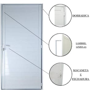Porta Lambril de Alumínio 210 x 80cm com Maçaneta Linha 25 Lado Esquerdo Esquadrias Bergame Branco