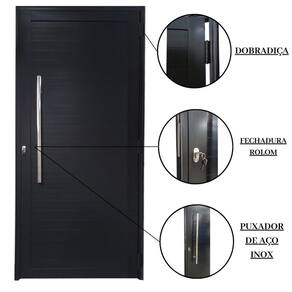 Porta Lambril de Alumínio 210 x 80cm com Puxador Linha 30 Lado Direito Preto