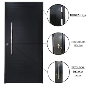 Porta Lambril de Alumínio 210 x 90cm com Puxador Linha 30 Lado Direito Preto